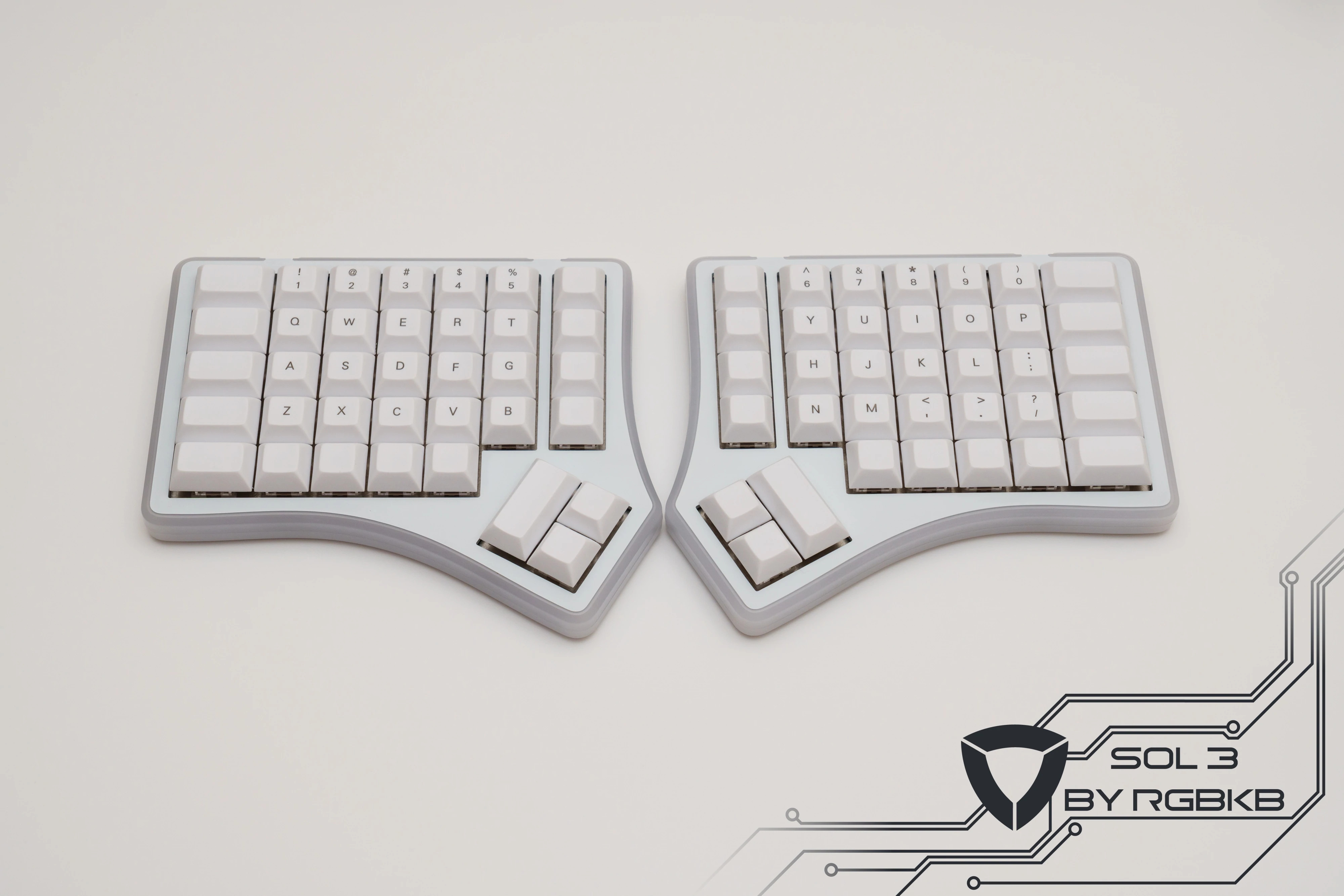Basically, it is very similar to the Ergodox-EZ, even if it has fewer buttons (in the thumb cluster, the Sol3 has 72Keys).